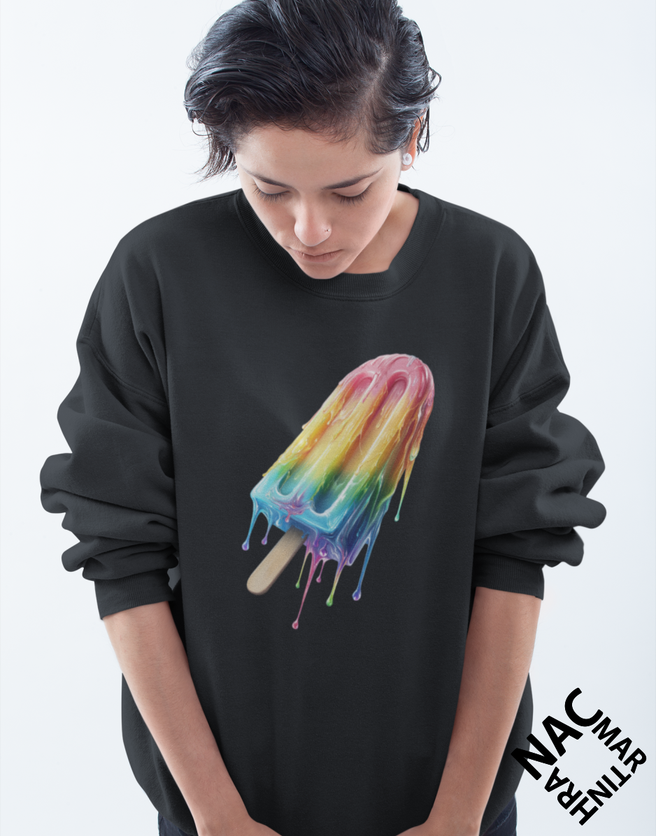 - Vpředu je autorský potisk nanuka a na zádech je nápis "Už teču!"